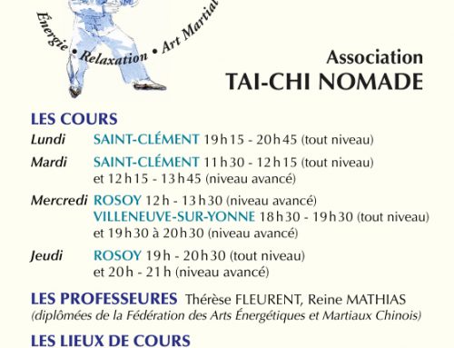 pique-nique 20 juin 2021 Voir l'image agrandie tfleurent@orange.fr2023-08-31T13:06:03+02:00 Autres actualités Stage d’été 2025 17/04/2025 Calendrier prévisionnel 2025 17/01/2025 Horaires des cours 06/08/2024 Stage taï-chi-chuan 10 mars 2024 10/02/2024 Stage taï-chi-chuan 8 mai 2024 10/02/2024